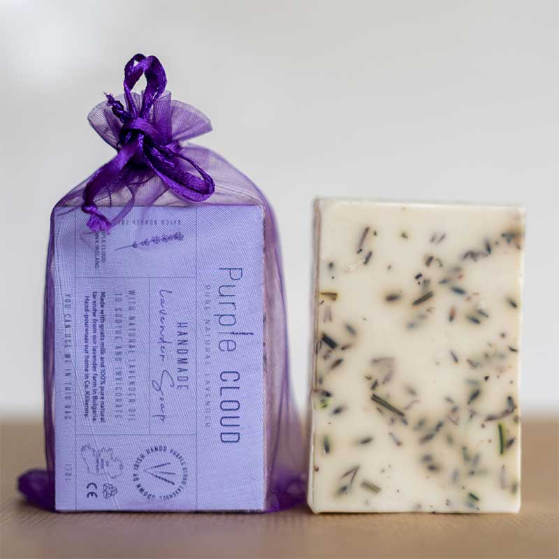 Our Purple Cloud Lavender Soap gently nourishes and protects overused hands. Infused with calming, fragrant lavender petals, this bar effectively promotes soft and supple skin. 2 bars of our Lavender Soap is featured in this deluxe hamper. To use our luxurious handmade lavender soap, simply wet the soap bar, rub it between your hands to create a lather, massage it into your hands, face or body, and then rinse it off with lukewarm water.